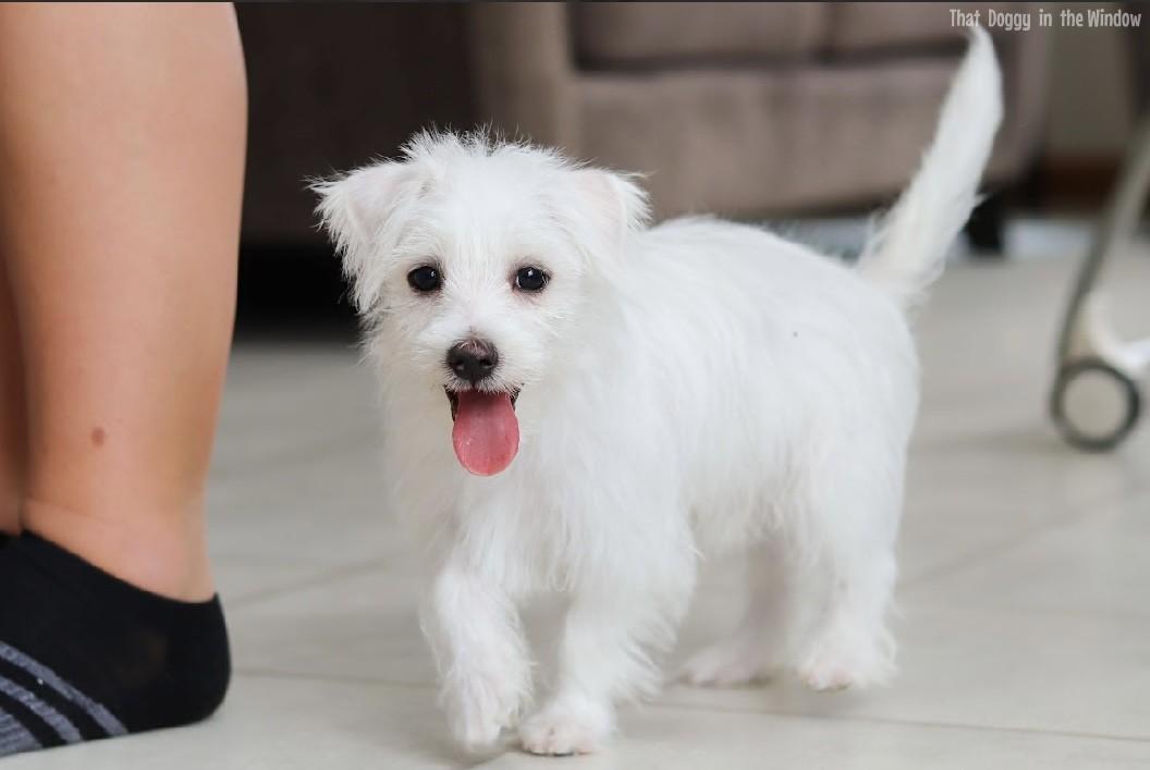 His mom is a Morkie that weighs 7.5 pounds and his dad is a Maltese that weighs 9 pounds, so Eddy should be the perfect size for anyone who wants a small, cuddly lap pup!